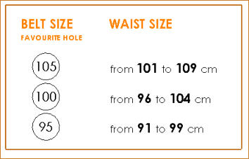 Mät din midja med ett måttband. Var noga med att stå normalt och andas normalt. Mäta med kläder på eller mäta ditt använda bälteshål på ditt bälte.Använd nummer “BELT SIZE” enligt tabell under, för att beställa ett nytt bälte som passar ordentligt.